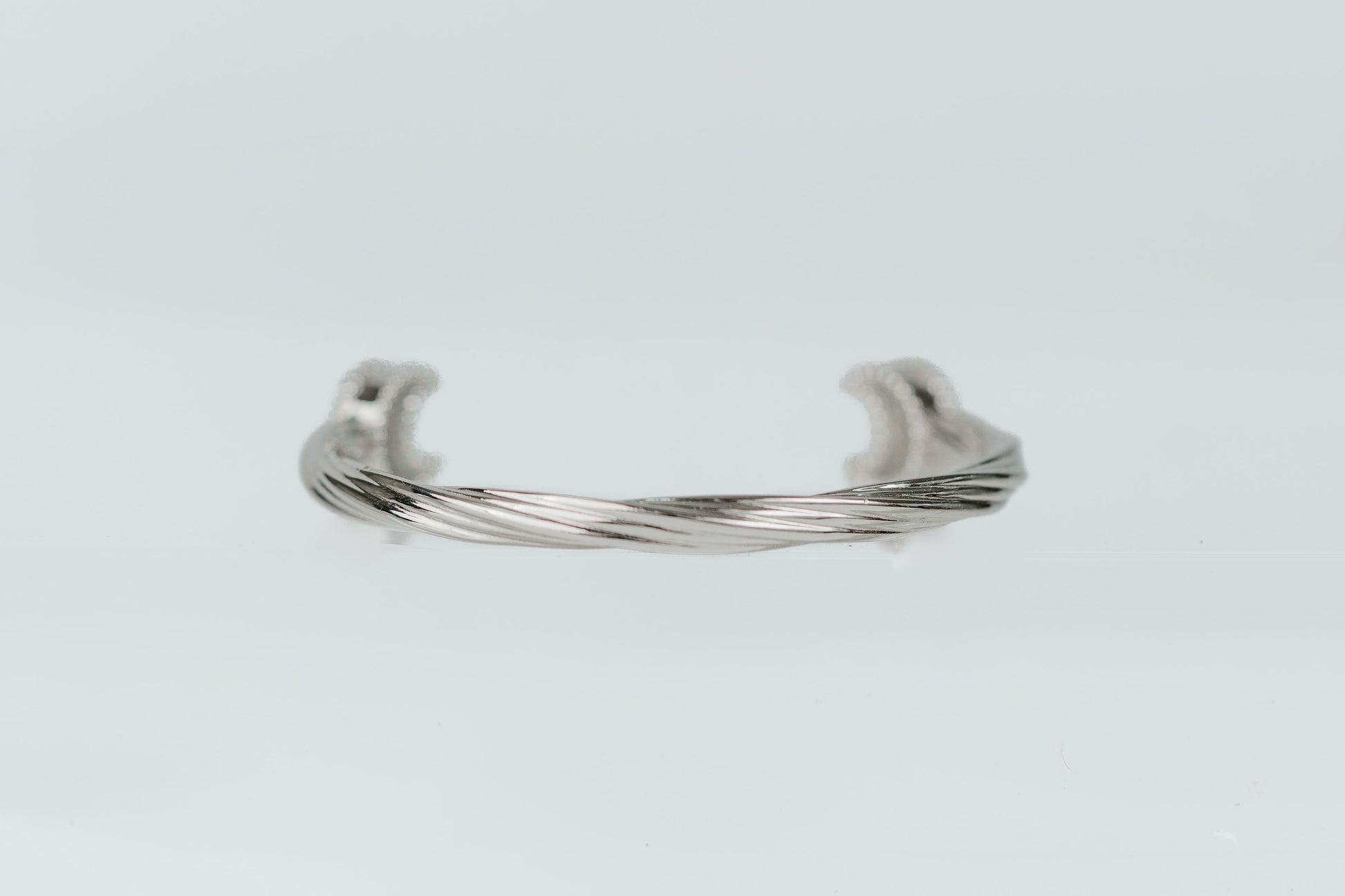 the softly twisted band opens to reveal crescent moon ends finished with delicate beaded detailing.
